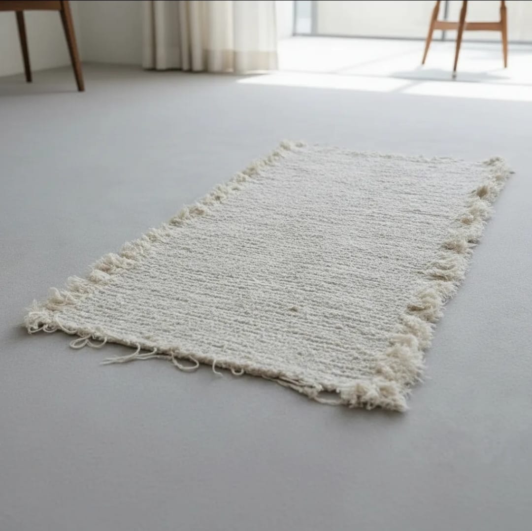 ALFOMBRA ARTESANAL RUSTICA 70 X 40 MTS-BLANCO-ALGODON 100%